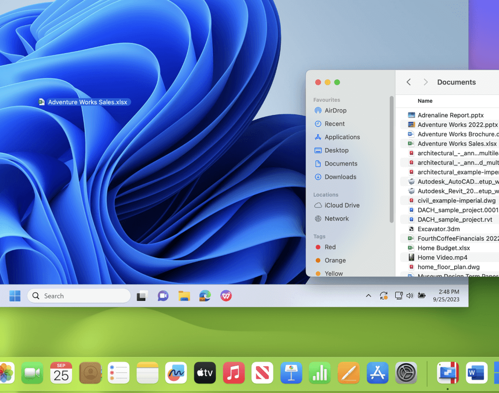 Drag and drop files and images between Windows and Mac apps